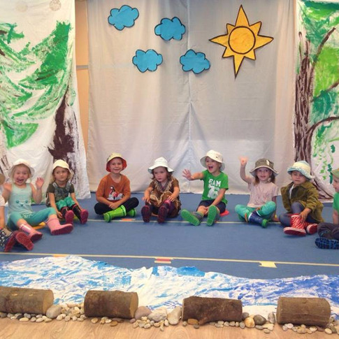 June16th was not an ordinary day. The classroom changed into a place with long wavy grass, a deep cold river, thick oozy mud, a big dark forest, a swirling whirling snowstorm and a narrow gloomy cave. Those were the props made by the children for their drama play "We are going on a bear hunt" - part of their End of the Year Show 2016. But first the parents had to arrive, sit and wait for children who were very excited to perform! When they were ready in their costumes they arrived to dance and sing some songs. Then they changed and transformed into the hunters - they put on their hats, T-shirts, boots and painted their faces so the bear would not see them. Brave as could be they came back to the "preschool stage" and acted out the drama play the best they ever did! Bravo! Every child did a great job and the teacher, parents and the children themselves felt very proud. We spent one very nice afternoon that day.